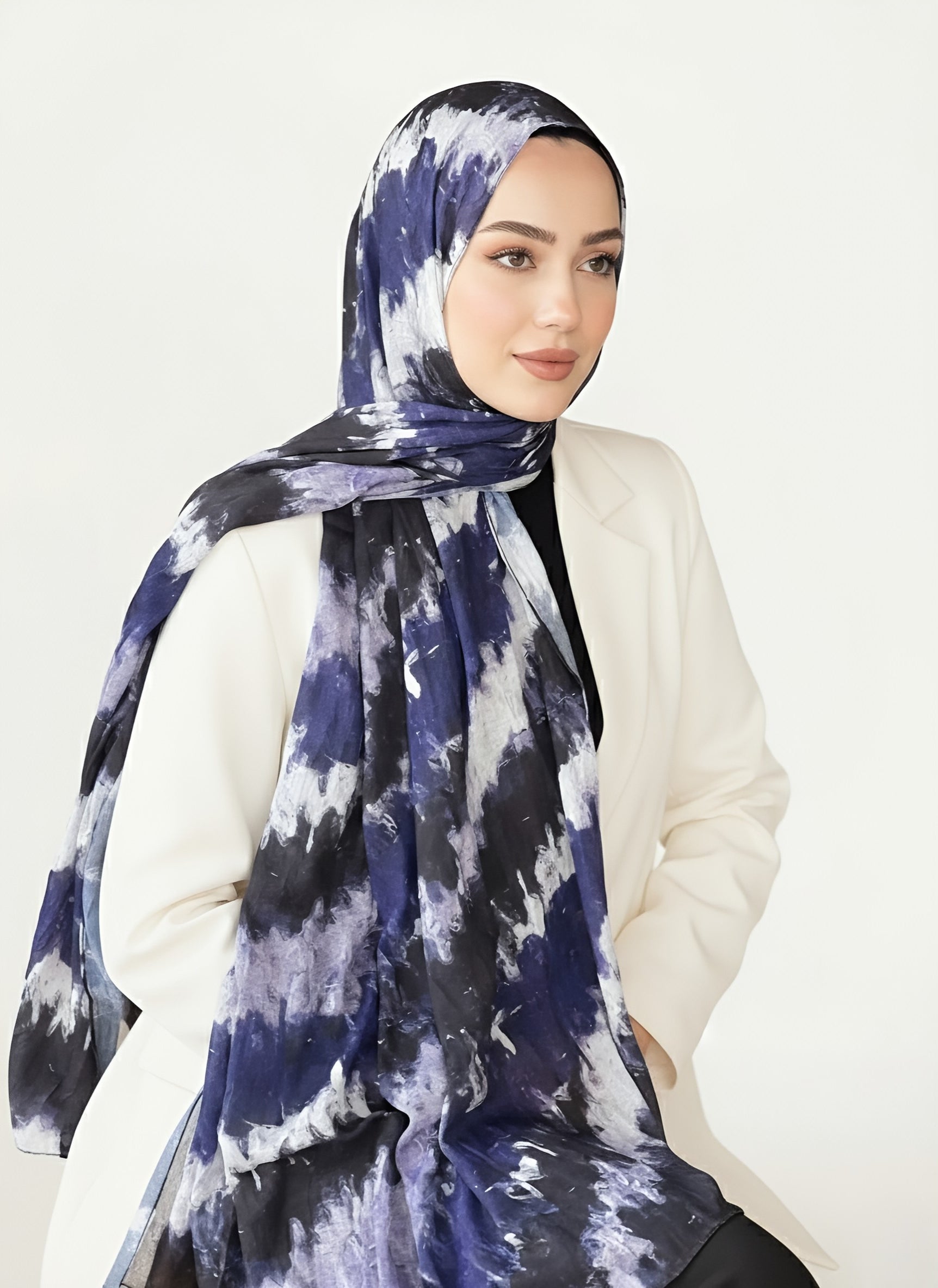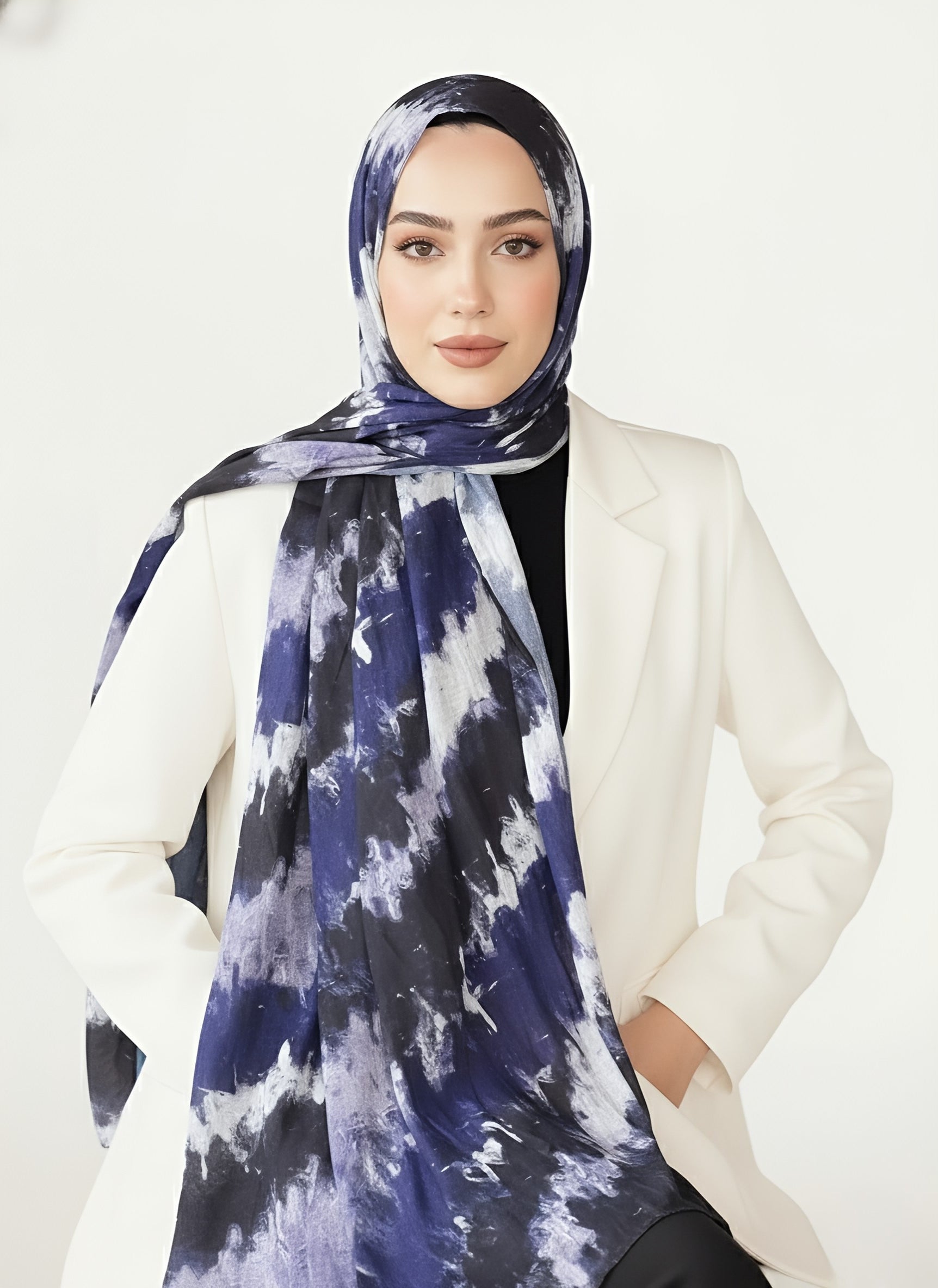 İlkbahar Ritm Desen Bambu Şal-Gece Mavisi