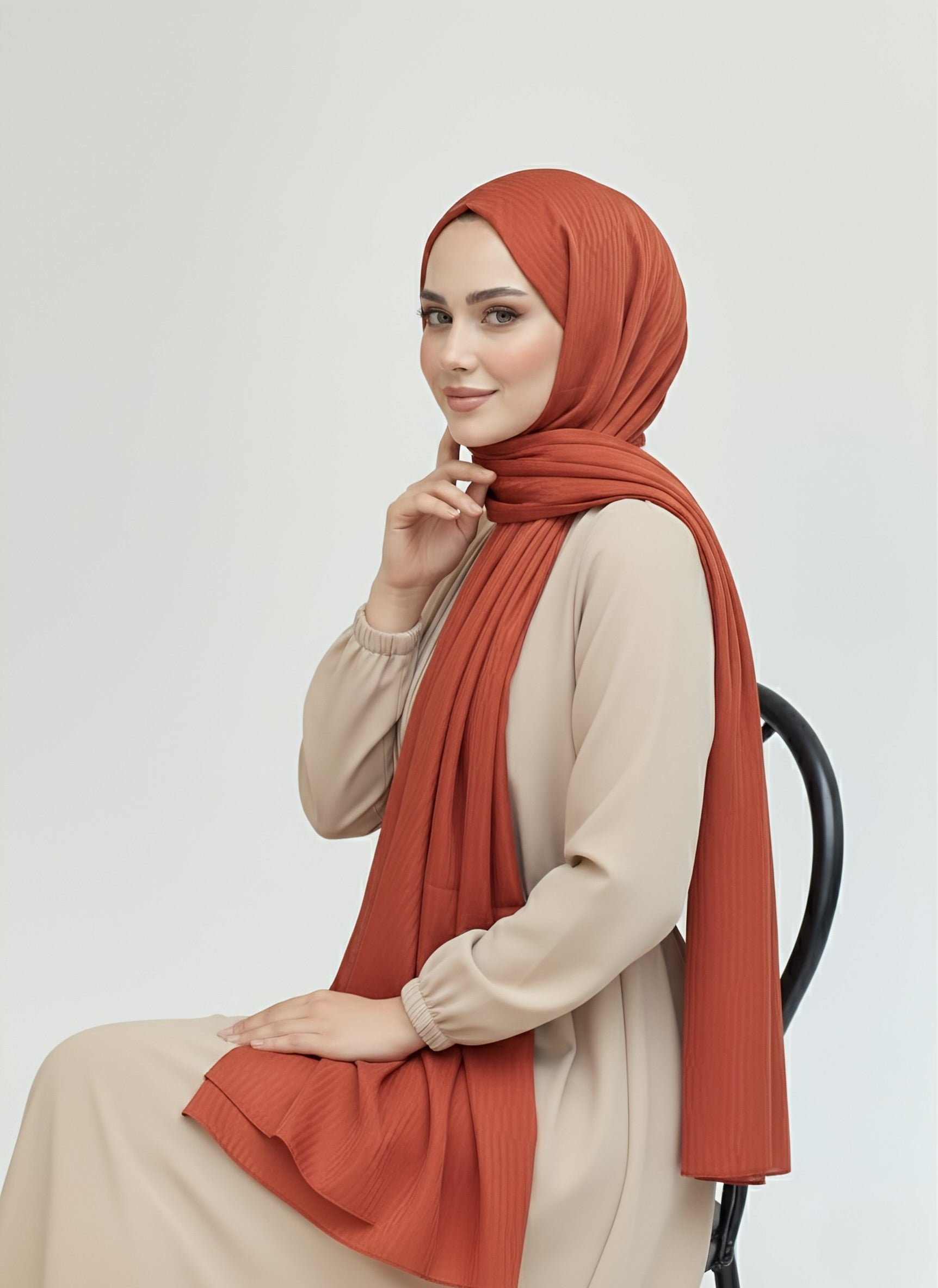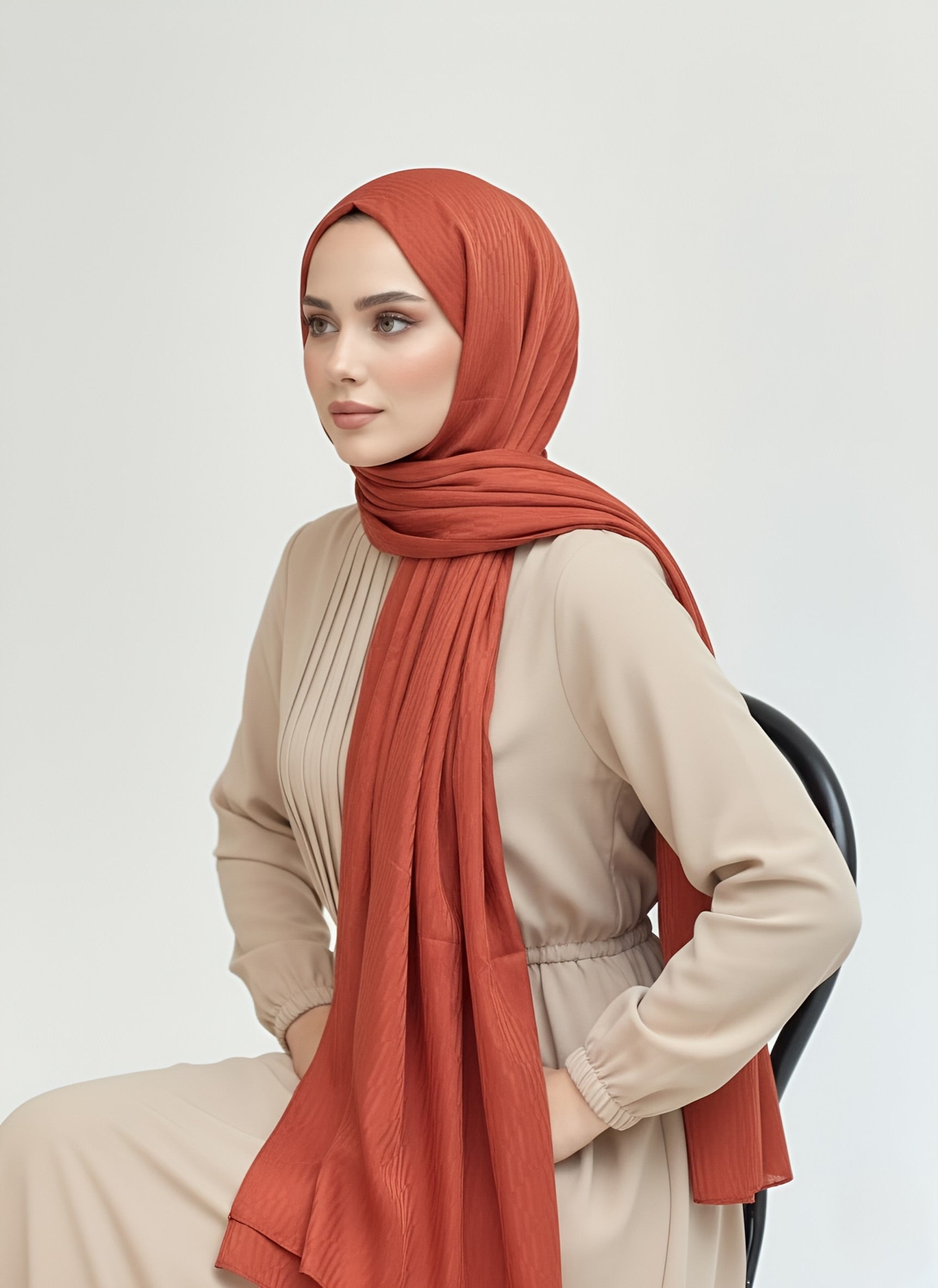 İpeksi Jakar Serisi Chevron Desen Şal -Kiremit