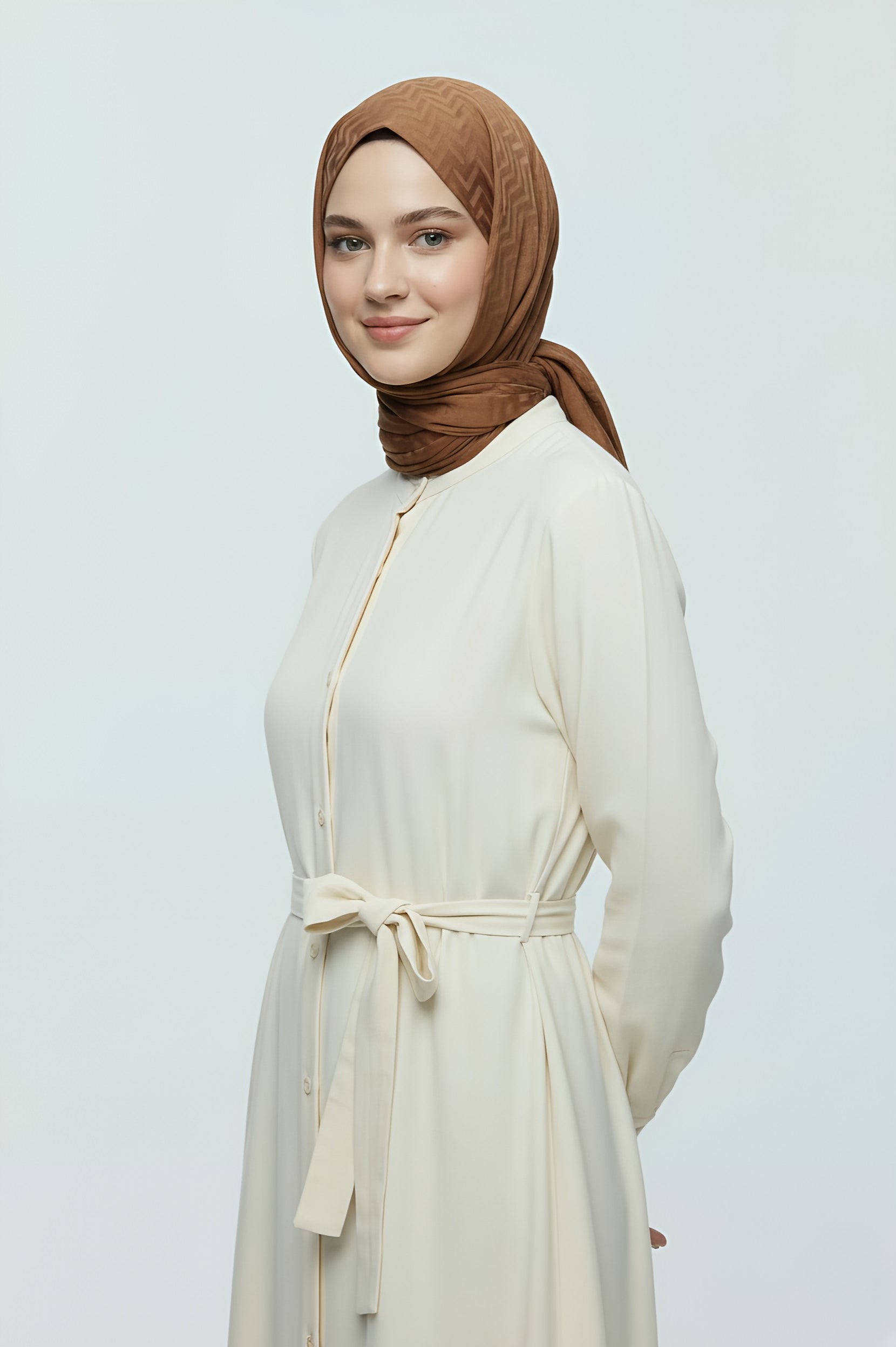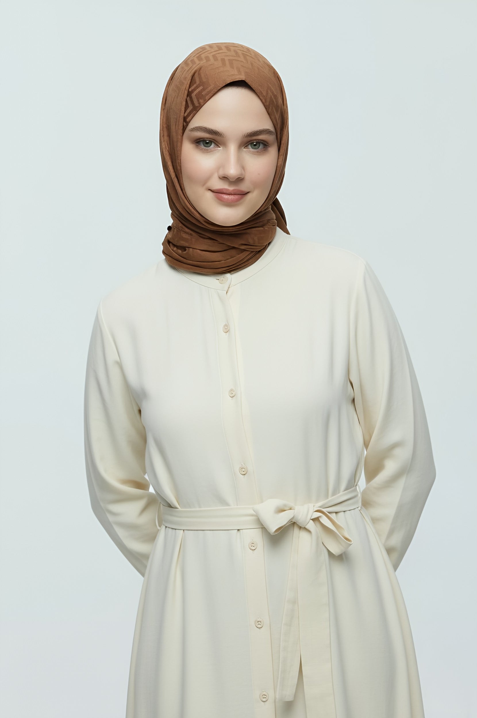 İpeksi Jakar Serisi Labirent Desen Şal-Kahverengi