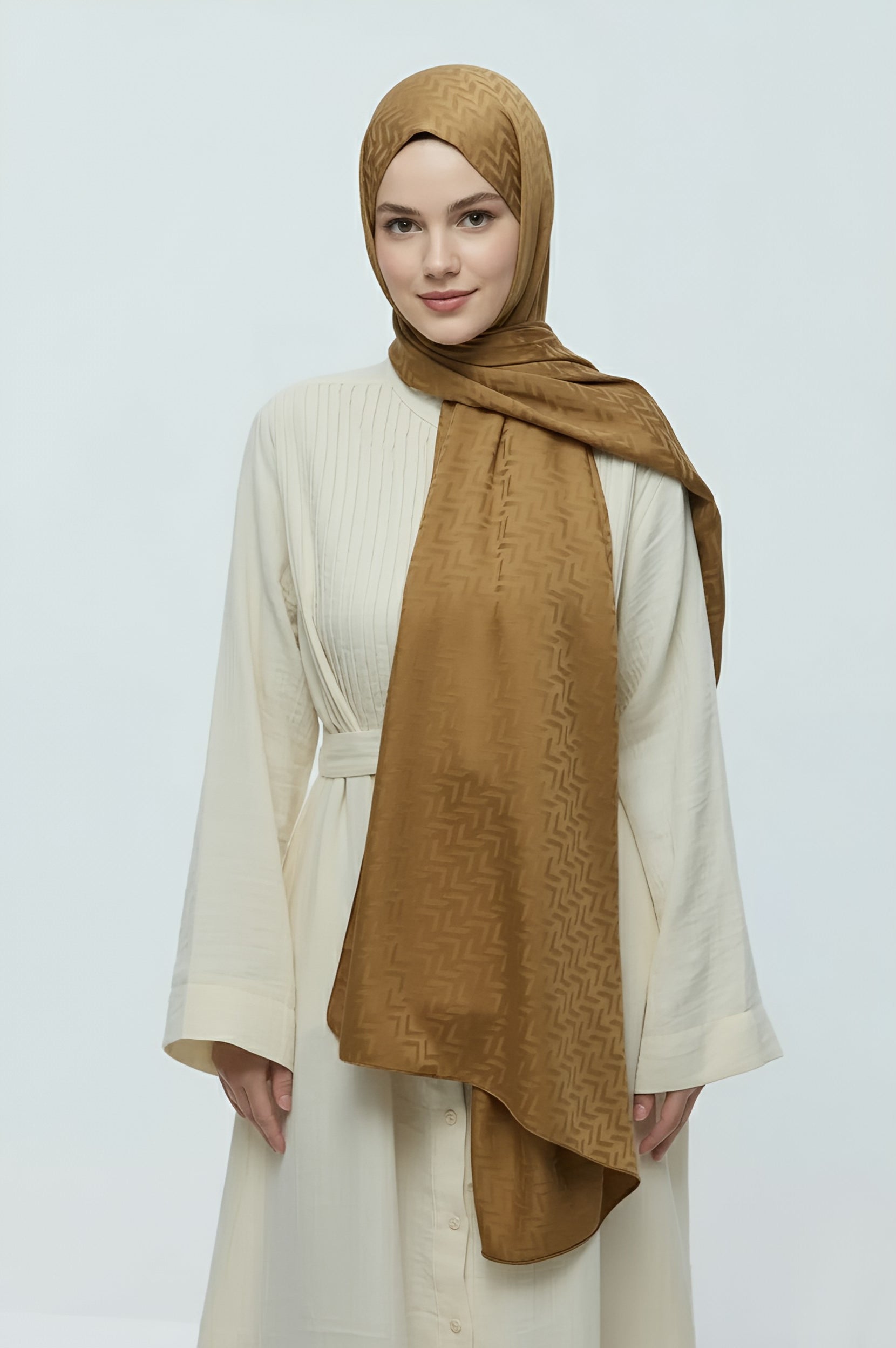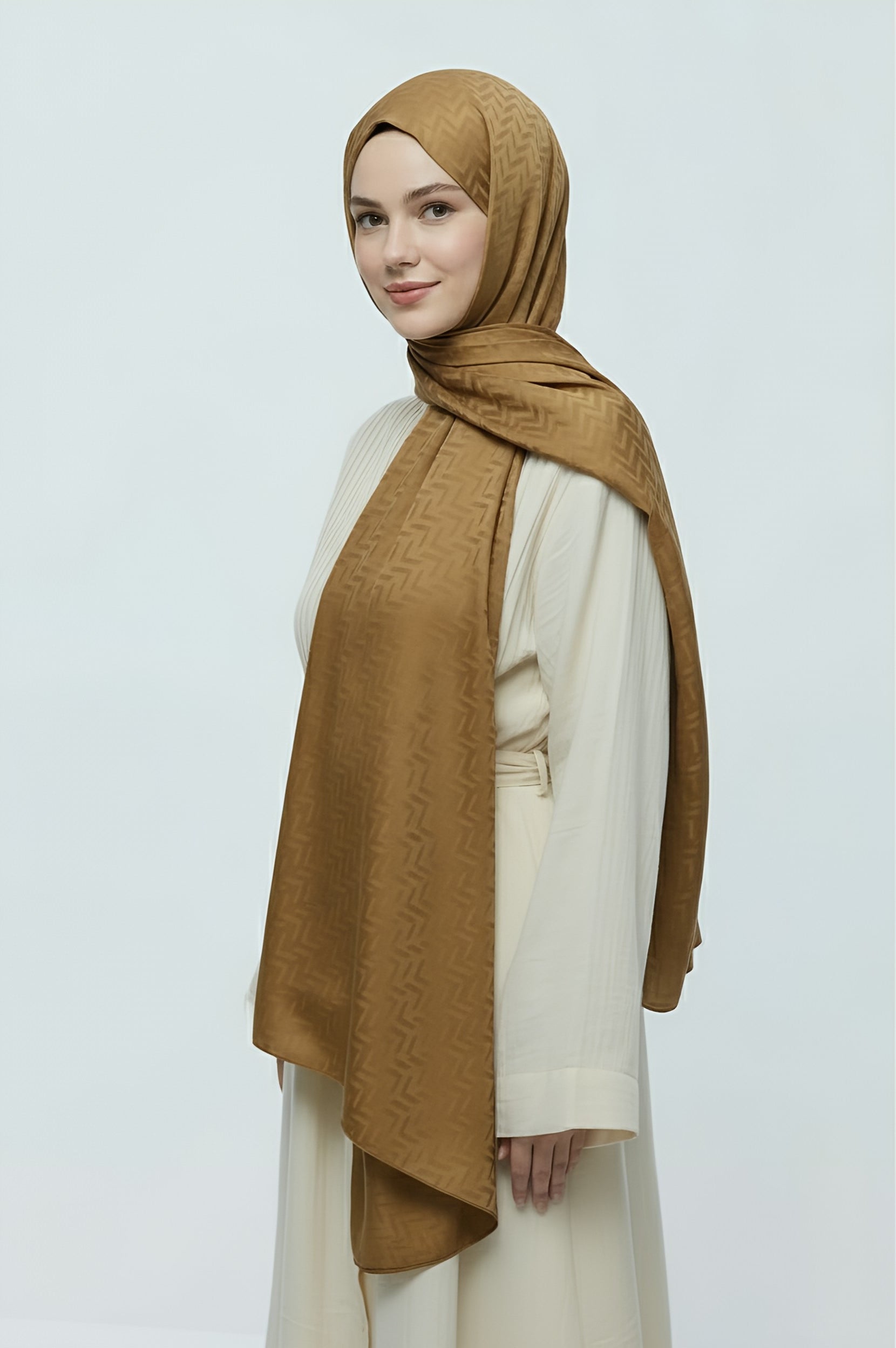Lüks ipeksi dokusu, her dokunuşta size eşlik eden benzersiz bir konfor sunar. Şalın üzerindeki dinamik ve sofistike Chevron deseni, klasik zarafeti modern bir stille birleştirir.