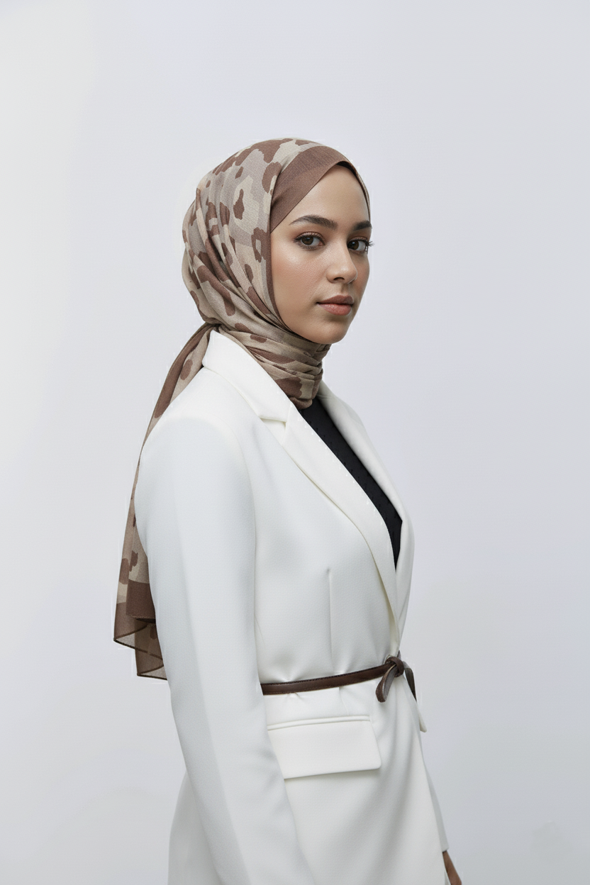 Leopar Desen Aya Şal-Kahverengi