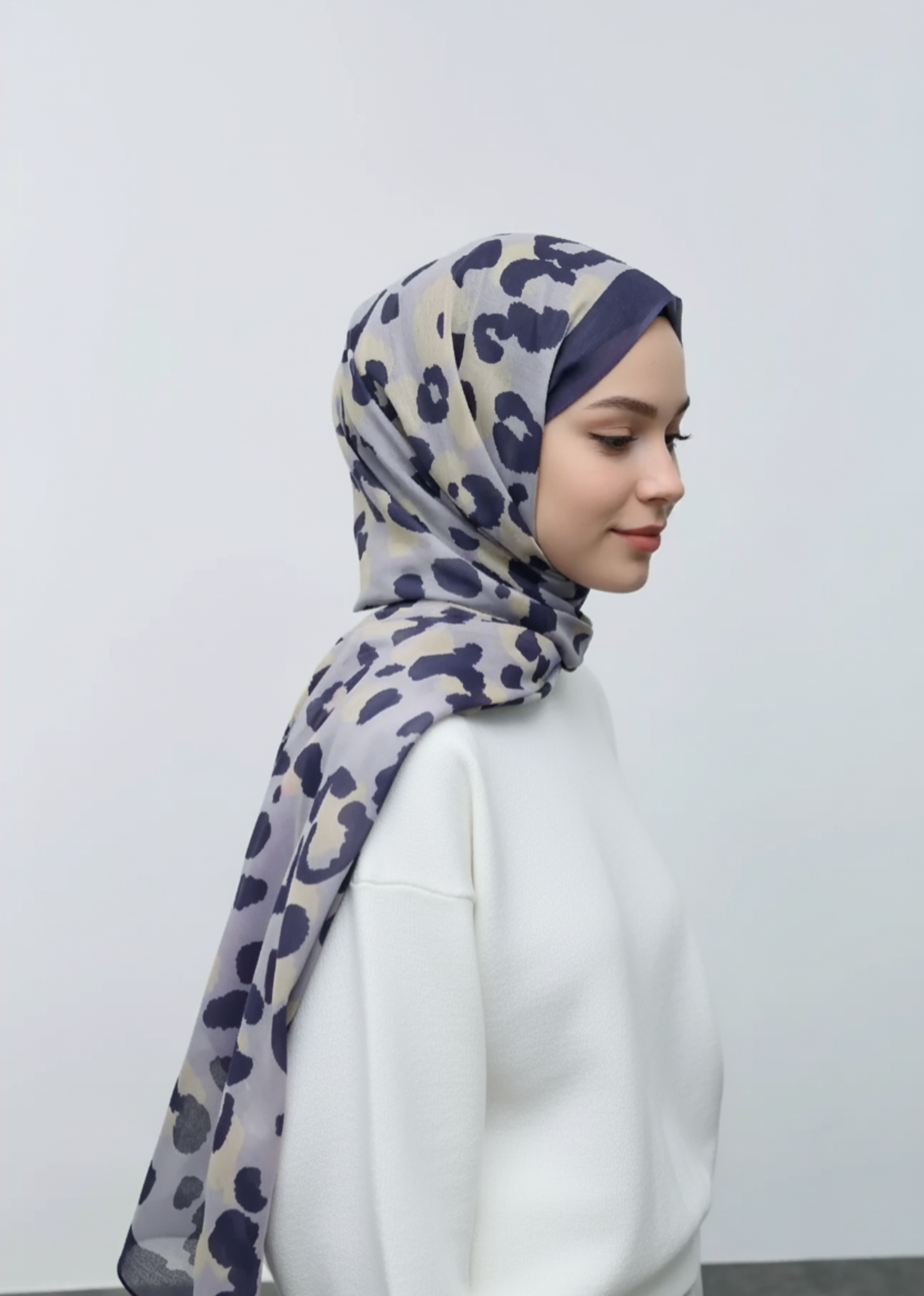 Leopar Desen Aya Şal-Morcivert