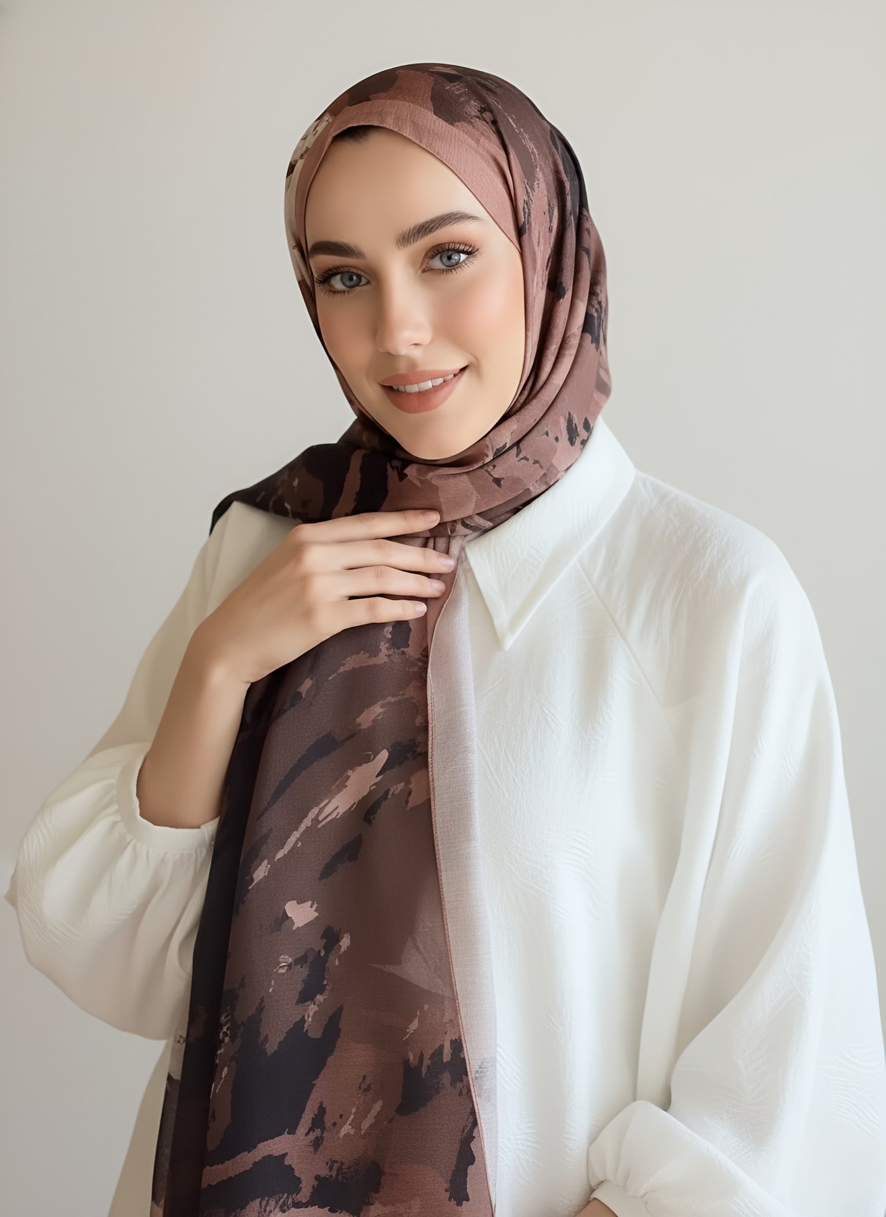 👌 Kolay ve Zarif Duruş: Hafifliğine rağmen tok ve akıcı yapısı, şalınızın kolayca şekil almasını ve gün boyu kaymadan, dökümlü bir zarafetle durmasını garantiler.